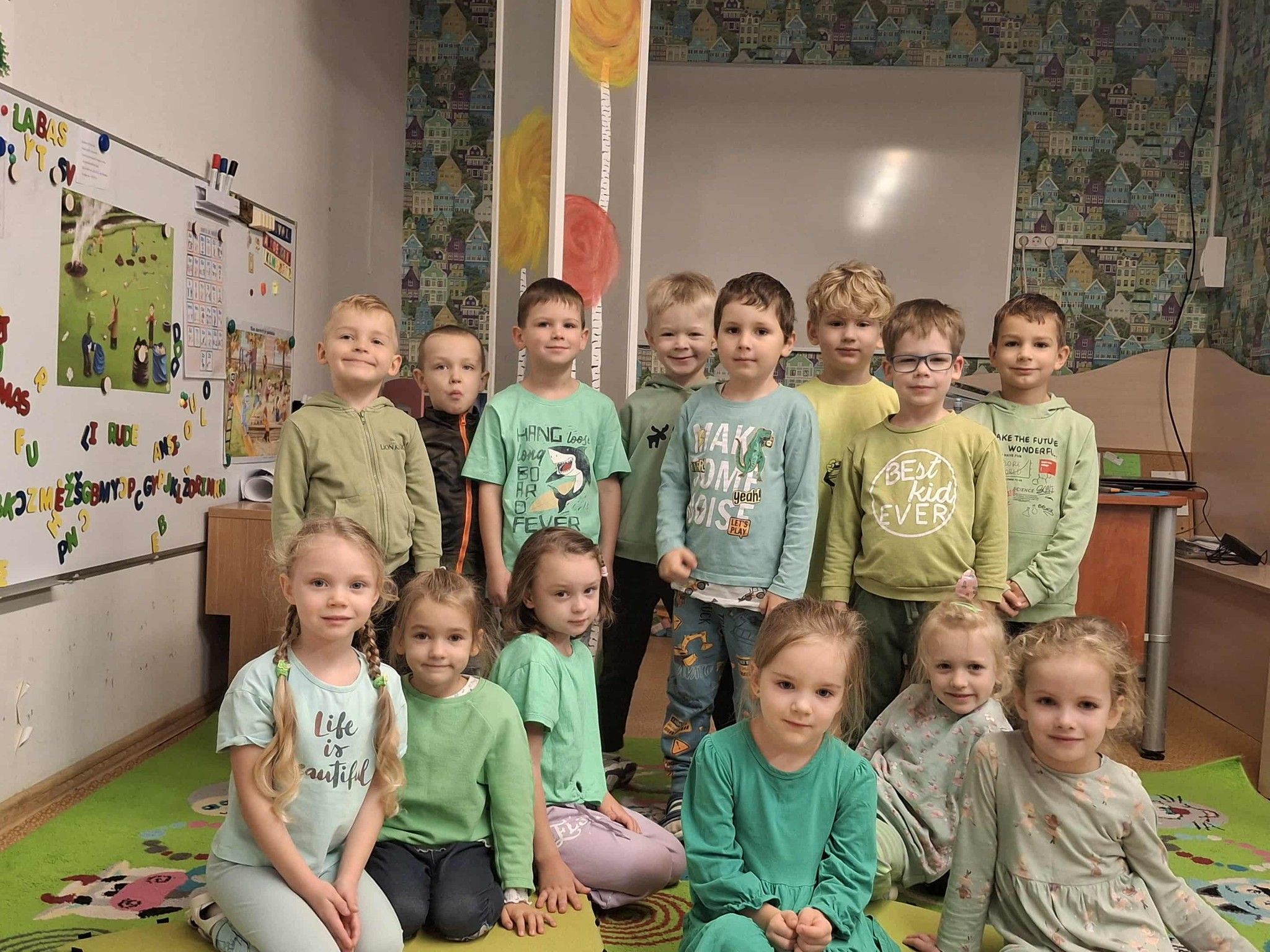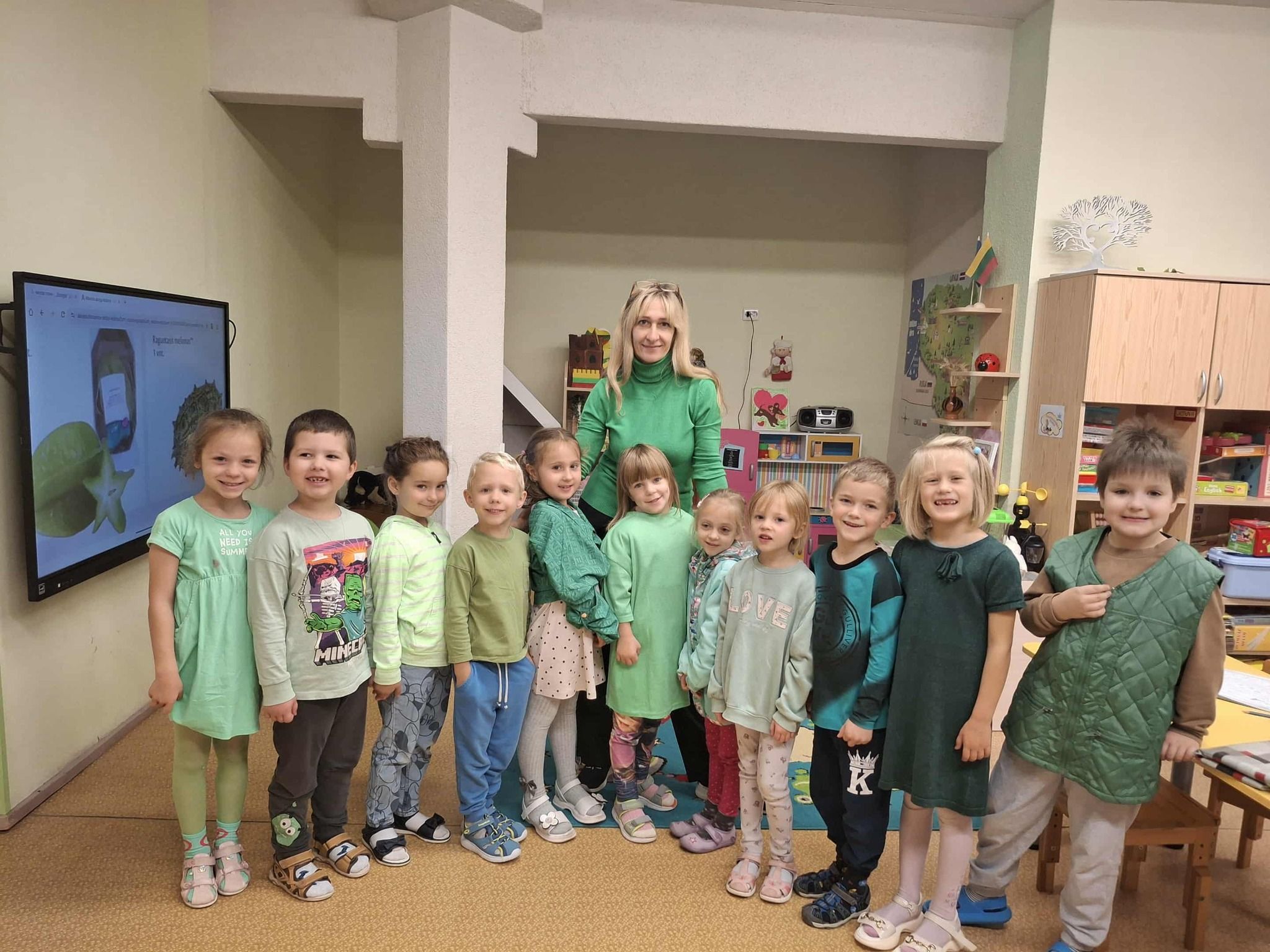 👇 Kviečiame pasidžiaugti akimirkomis iš šios dienos – vaikai ir mokytojai pasipuošę žalia spalva! 📸
