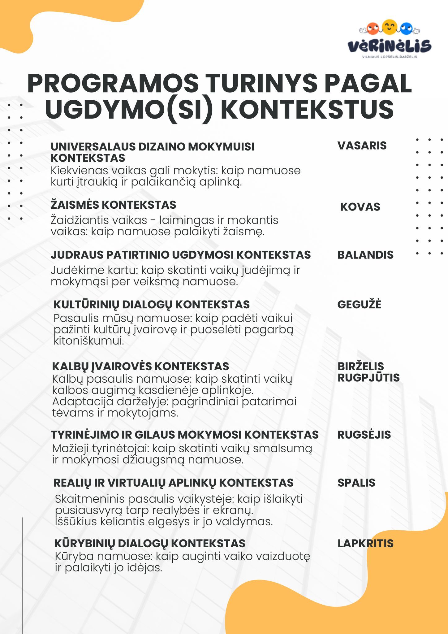 Mūsų darželis jau antrus metus prisijungė prie Besimokančių darželių tinklo. Kviečiame tėvelius dalyvauti nemokamuose nuotoliniuose mokymuose, skirtuose šiuolaikiniam vaikų ugdymui ir bendradarbiavimui su darželiu.